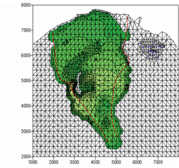 В модели OILFEM уравнения плановой фильтрации решаются на основе балансового метода конечных элементов c использованием неортогональных сеток.