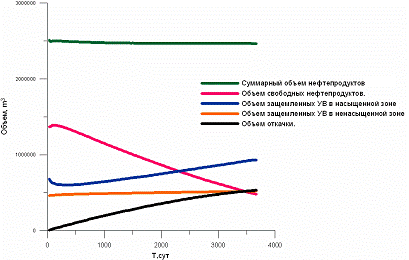 График изменения объемов нефтепродуктов при работе системы откачки